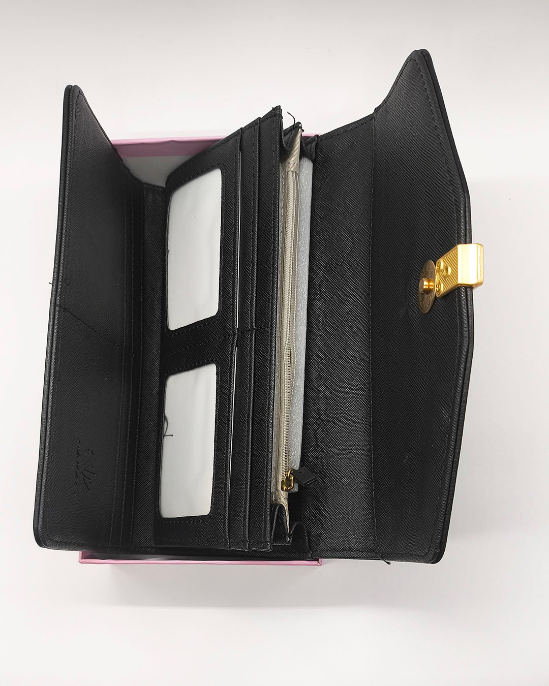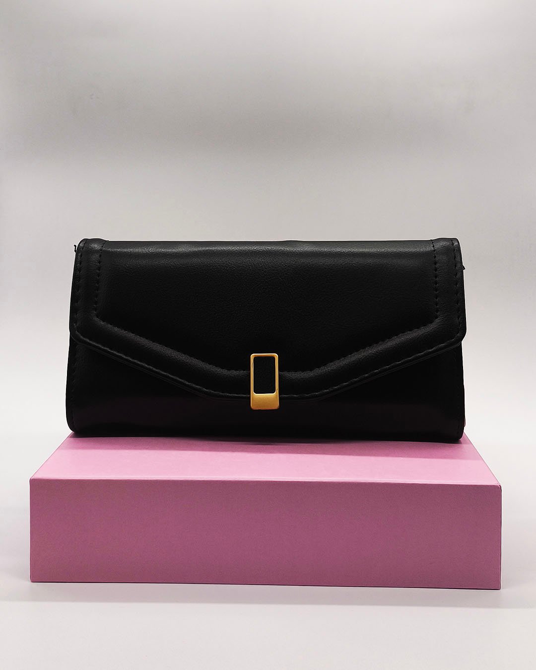 Esta cartera de mano combina diseño sofisticado con funcionalidad, ideal para eventos nocturnos o salidas casuales. Fabricada con materiales de alta calidad y un cierre dorado elegante, aporta estilo y seguridad a tus pertenencias. Su tamaño compacto permite llevar lo esencial con comodidad.