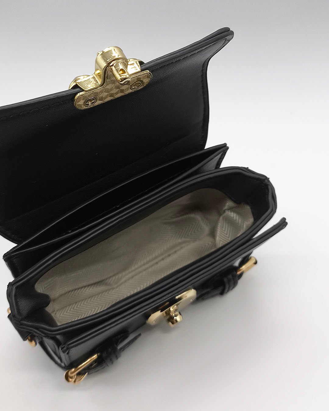 Esta cartera de mano combina estilo y funcionalidad, ideal para tus salidas nocturnas o eventos especiales. Fabricada en material sintético de alta calidad, destaca por sus hebillas y cierre metálico dorados, que le aportan un toque sofisticado. Compacta y práctica, perfecta para llevar tus objetos esenciales.