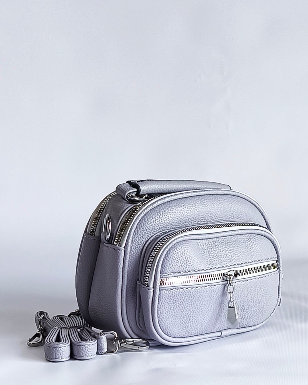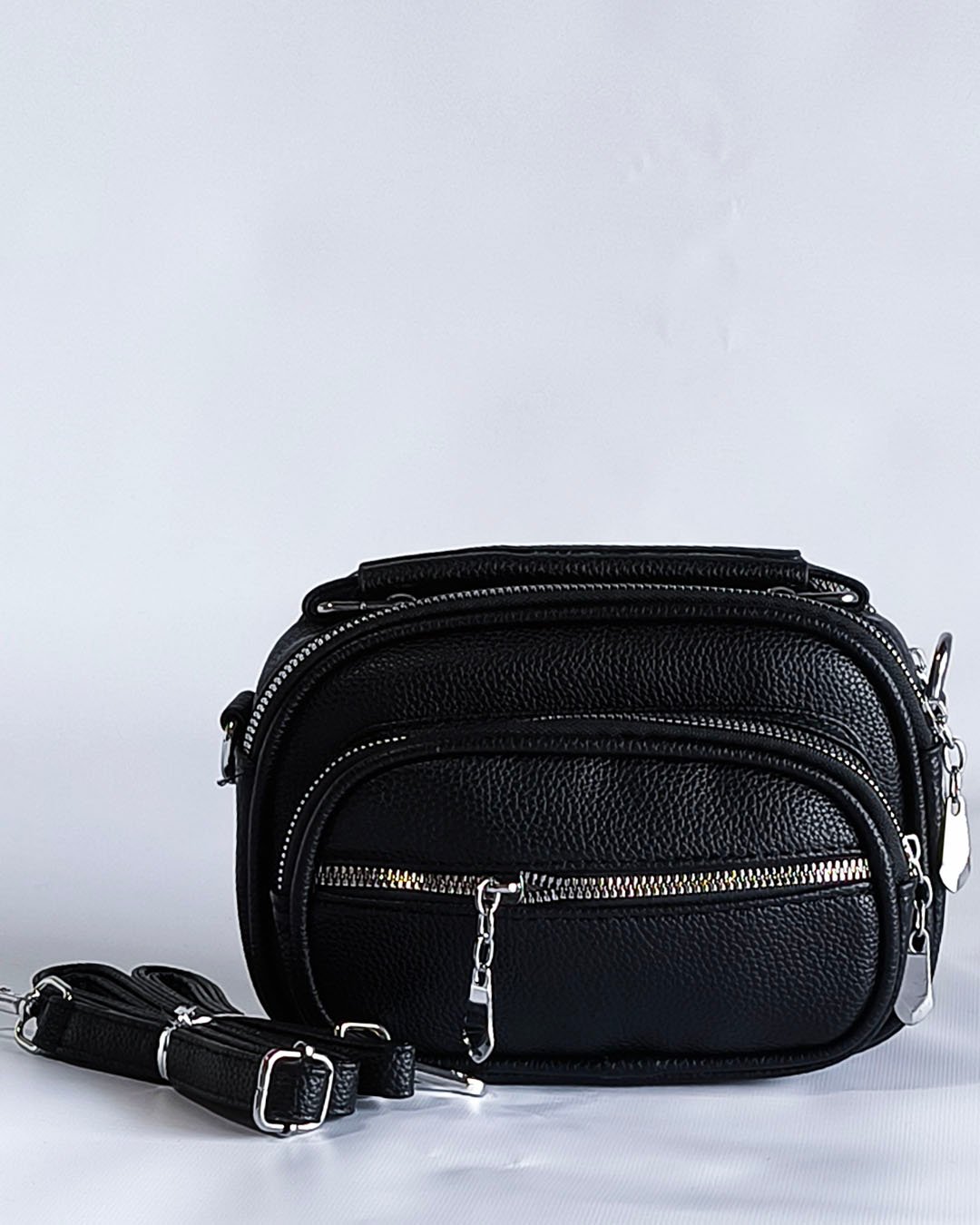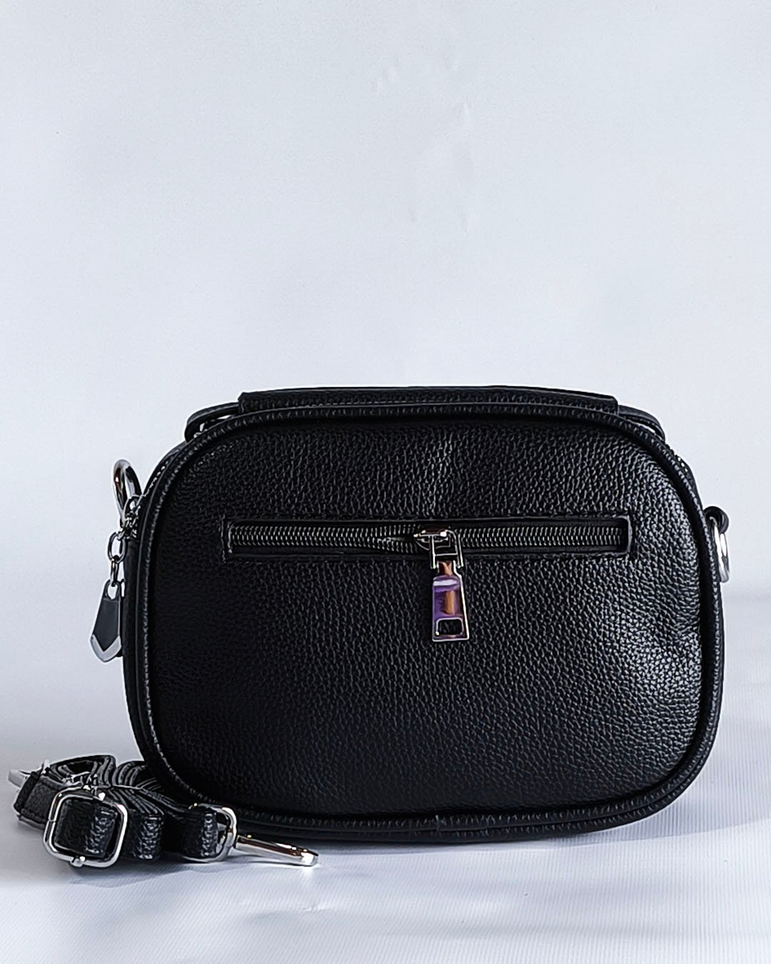 Modelo confeccionado en material símil cuero texturado, resistente y fácil de limpiar. Ideal para el uso diario gracias a su tamaño práctico y buena capacidad interna.