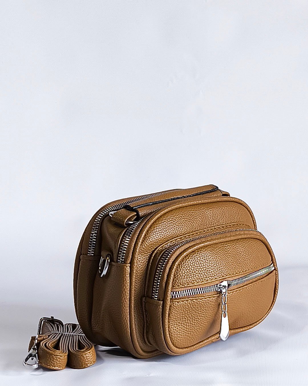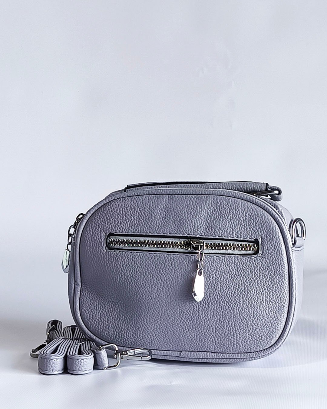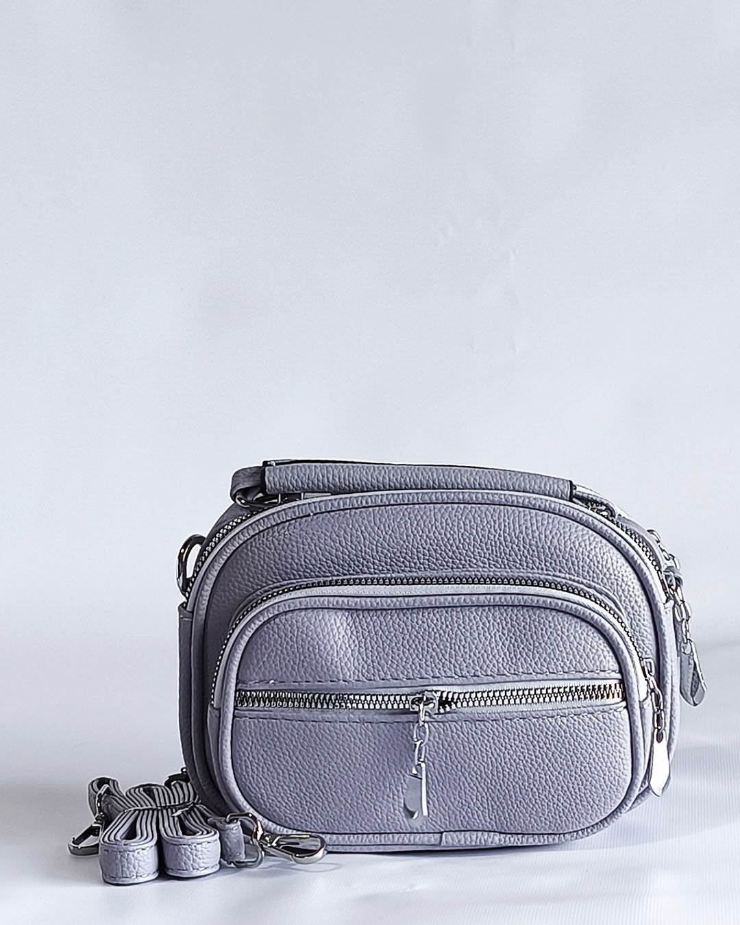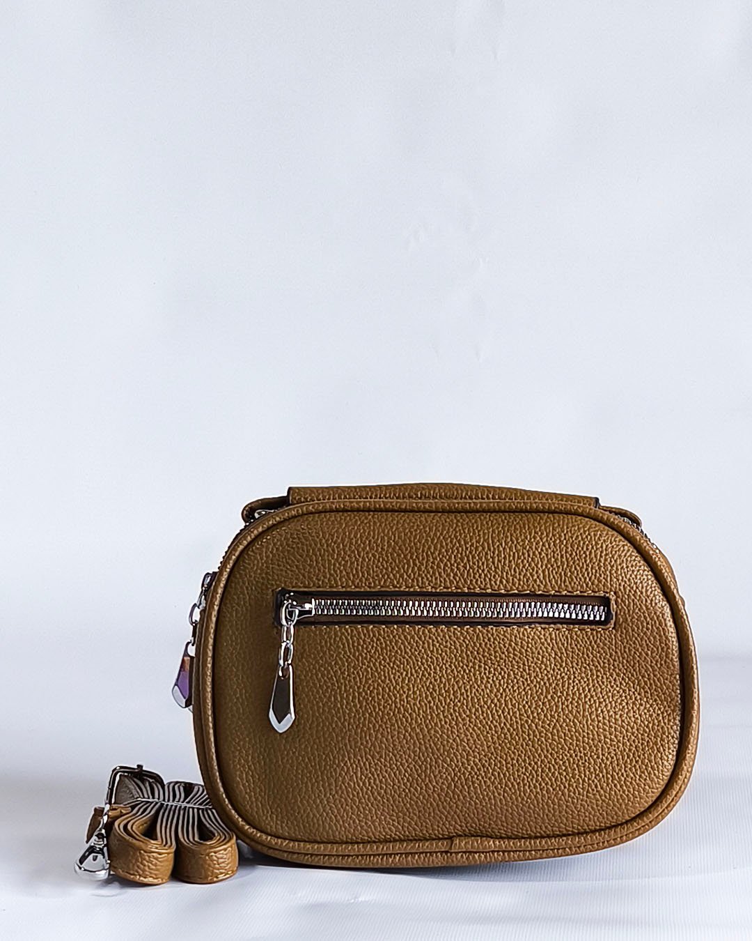 Modelo confeccionado en material símil cuero texturado, resistente y fácil de limpiar. Ideal para el uso diario gracias a su tamaño práctico y buena capacidad interna.