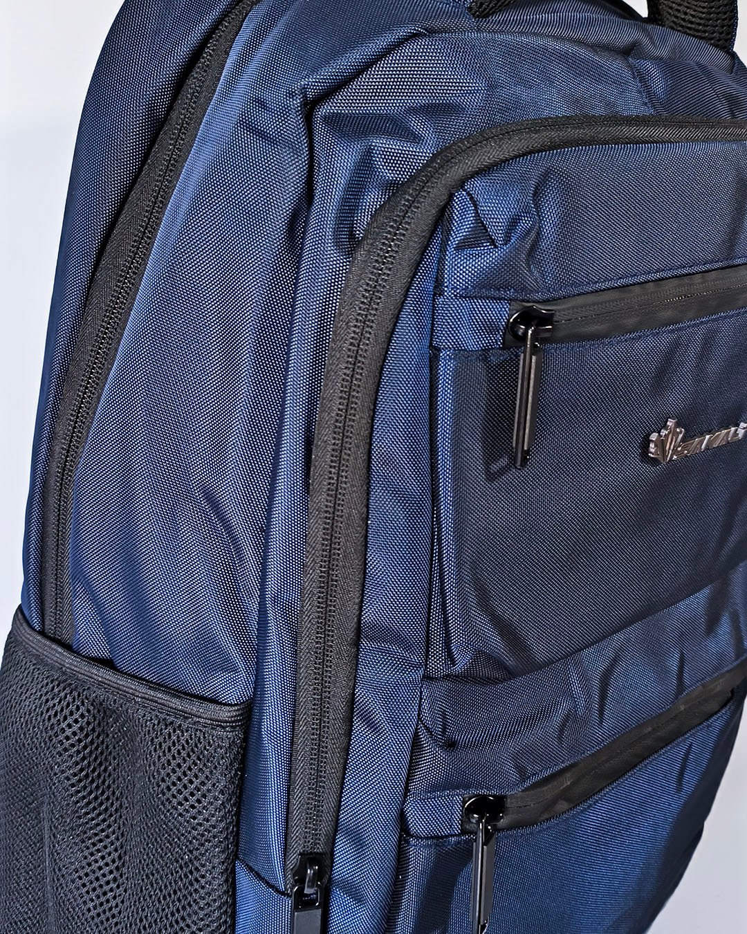 Cuenta con un compartimento principal amplio con cierre reforzado y espacio suficiente para cuadernos, carpetas o notebook. Incorpora bolsillos frontales con cierre para objetos de fácil acceso y bolsillos laterales de red para botellas o accesorios.